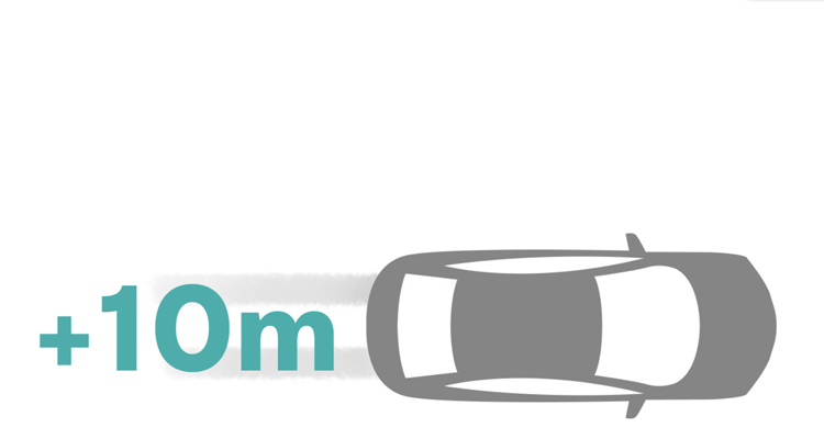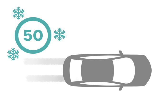 Avec des pneus hiver, la distance de freinage est jusqu’à 20 % plus courte ! À 50 km/h sur chaussée mouillée, cela représente un écart de plus de dix mètres.